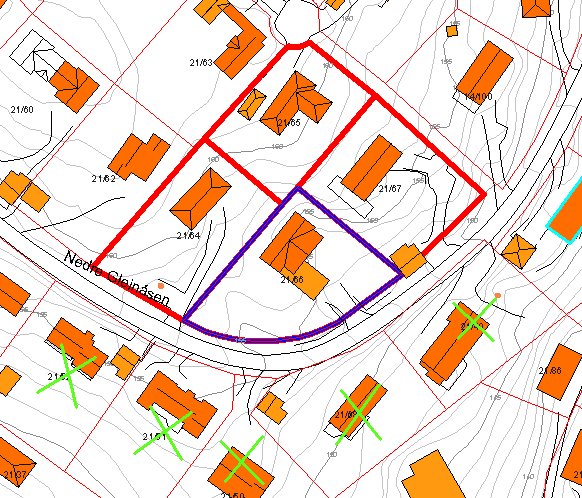 Eiendommene som er merket med et grønt kryss er gjenboere til